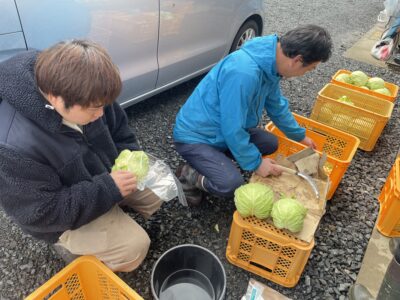 立派なキャベツがたくさんできていたので袋詰めをしていきます。